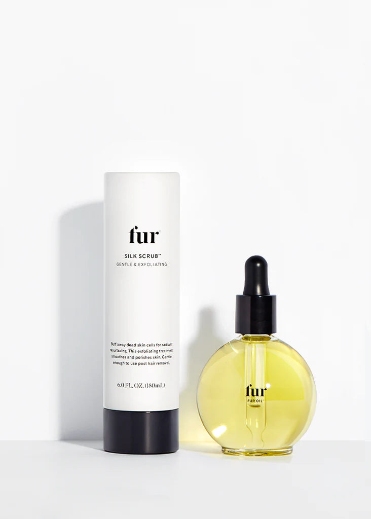 A non-abrasive and effective combo for rough, irritated skin. Silk Scrub gently exfoliates away debris and dull skin, while Fur Oil smooths over ingrowns, redness, and bumps for maximum silkiness. Working in tandem, the Gentle Resurfacing Duo will buff out rough spots and seal in hydration for a more polished, radiant complexion. Save $7 when you buy them as a kit.